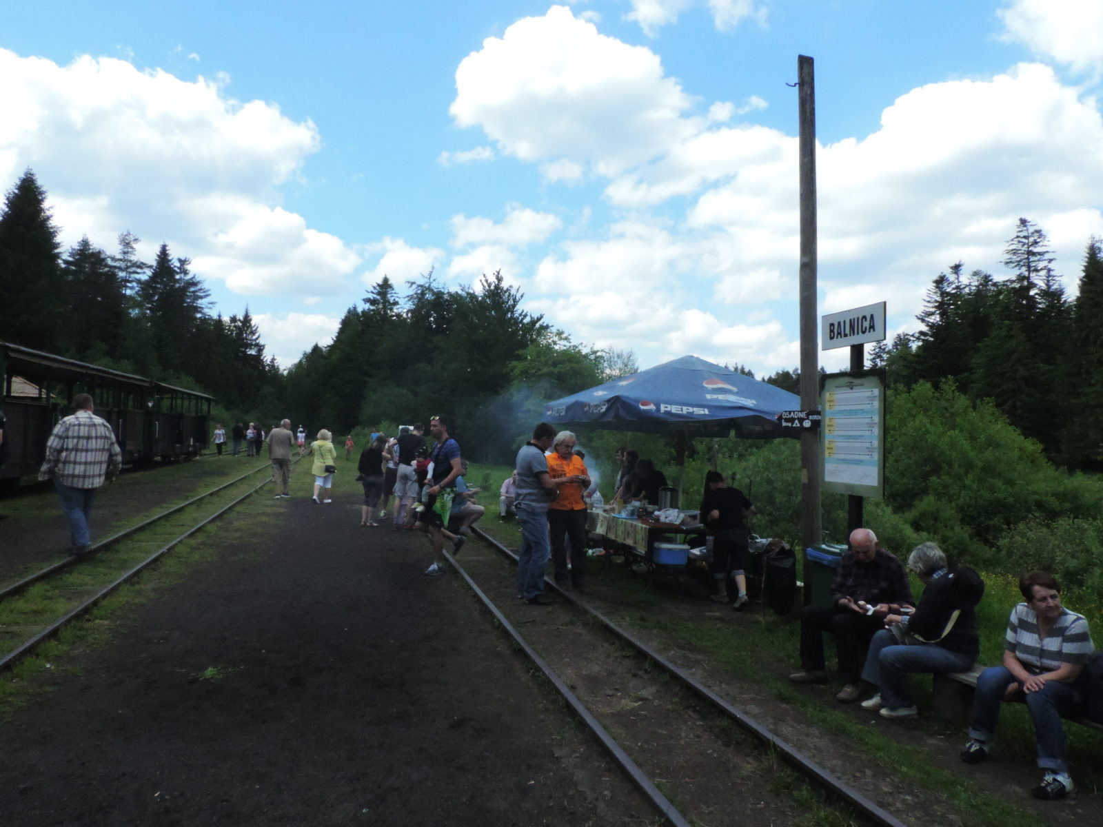 Na stacji docelowej postój około 30 minut. W Balnicy nic ciekawego nie ma, ale zadbano o to, aby turysta mógł wydać trochę grosza, kusząc zapachami z grilla 🙂 My skusiliśmy się na domowy bigosik i pajdę chleba ze smalcem i kiszonym ogórem! Mniam!