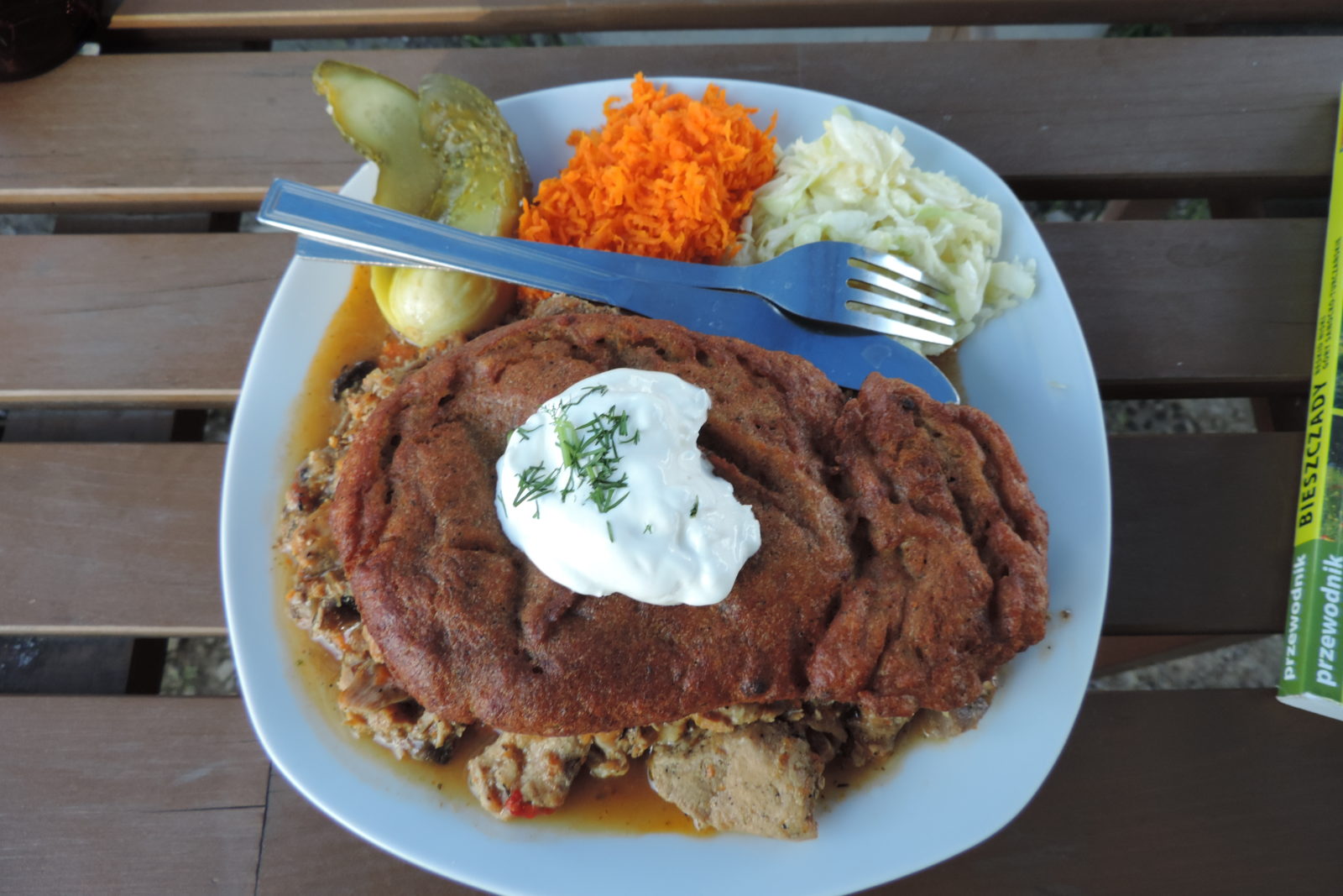 No i w Wetlinie zjedliśmy najpyszniejszy, jaki kiedykolwiek jadłam, placek po bieszczadzku! Porcja tak ogromna, że mój żołądek po spałaszowaniu połowy powiedział; dość!