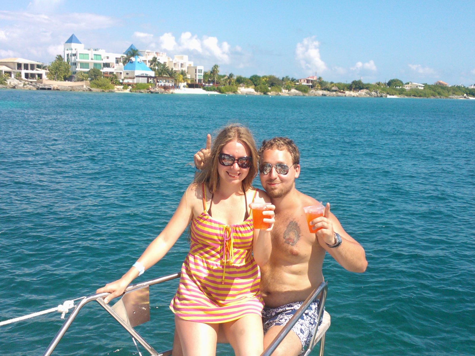 - niektóre statki oferują tzw. open bar na statku, czyli nielimitowaną ilość napojów (w tym drinków alkoholowych); oczywiście opcja alkoholowa dostępna dopiero po zaliczeniu snorklingu 🙂 w drodze powrotnej, z uwagi na to, że pasażerowie nie mogą opuścić statku smutni, przybywa „pogotowie tequilowe”, czyli panowie przebrani za piratów, którzy wykonując dziki taniec przy akompaniamencie głośnej muzyki (króluje Lil Jon feat. LMFAO – „Drink”), wlewają drinki z tequili tym bardziej odważnym pasażerom prosto do gardła 😀 😀 😀