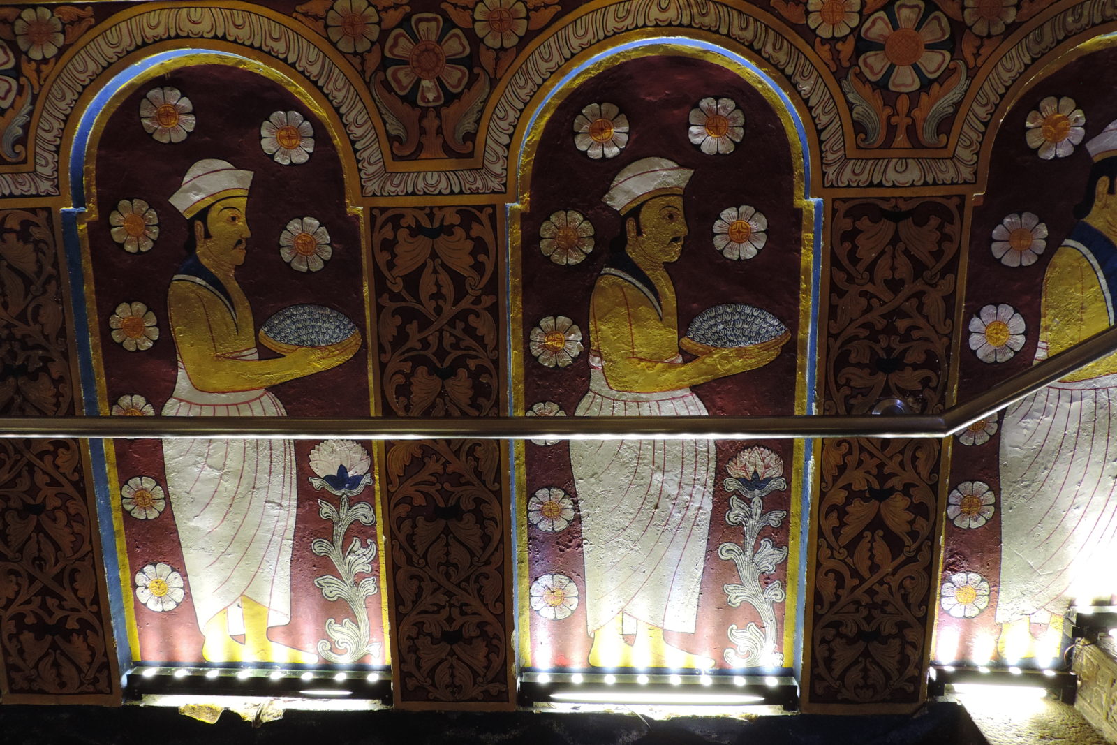Ściany pokryte zostały malowidłami przedstawiającymi historię życia Buddy.