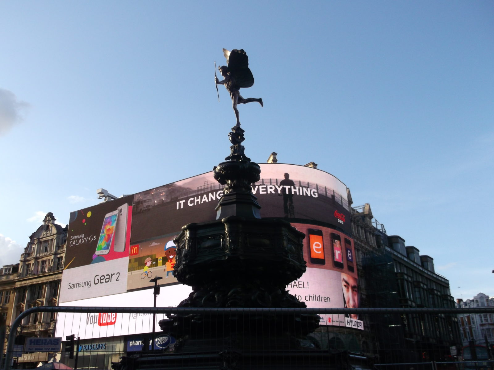 – Piccadilly Circus – plac i skrzyżowanie głównych ulic w dzielnicy West End w Londynie, niedaleko Soho. Miejsce rozpoznawalne głównie dzięki reklamom świetlnym umieszczonym na jednym z rogów placu. W centralnym miejscu znajduje sie fontanna z figurka Erosa. Jak dla mnie atrakcja turystyczna mocno przesadzona… Bilboardy jak bilboardy, a tłumy tak ogromne, że z łatwością można się zgubić.