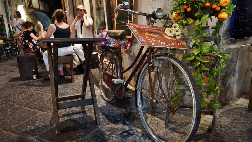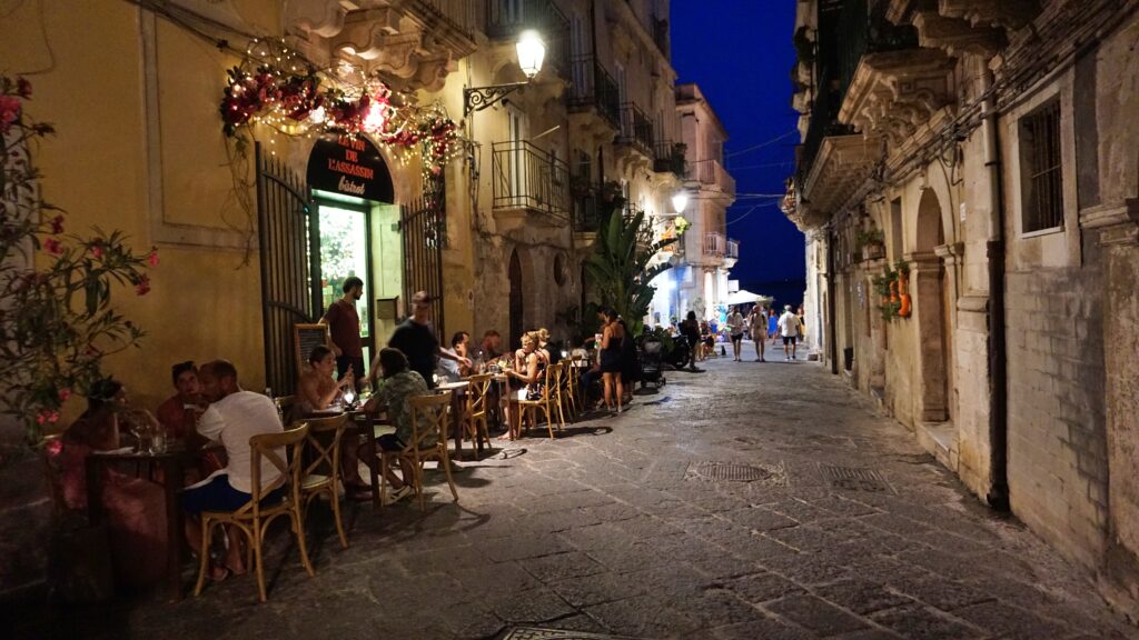 Spacerując po Ortigii warto się po prostu w gąszczu tych uliczek zgubić. Jak w każdym południowym miasteczku, życie rozkwita tutaj po zmroku. Sycylijczycy tłumnie opuszczają swoje domy. To czas spotkań z rodziną, z przyjaciółmi. Okoliczne restauracje pękają w szwach, a ulice rozbrzmiewają radosnym śmiechem. Zewsząd dochodzi zapach przyrządzanych potraw. Tak, to jest idealny moment na przekąskę.