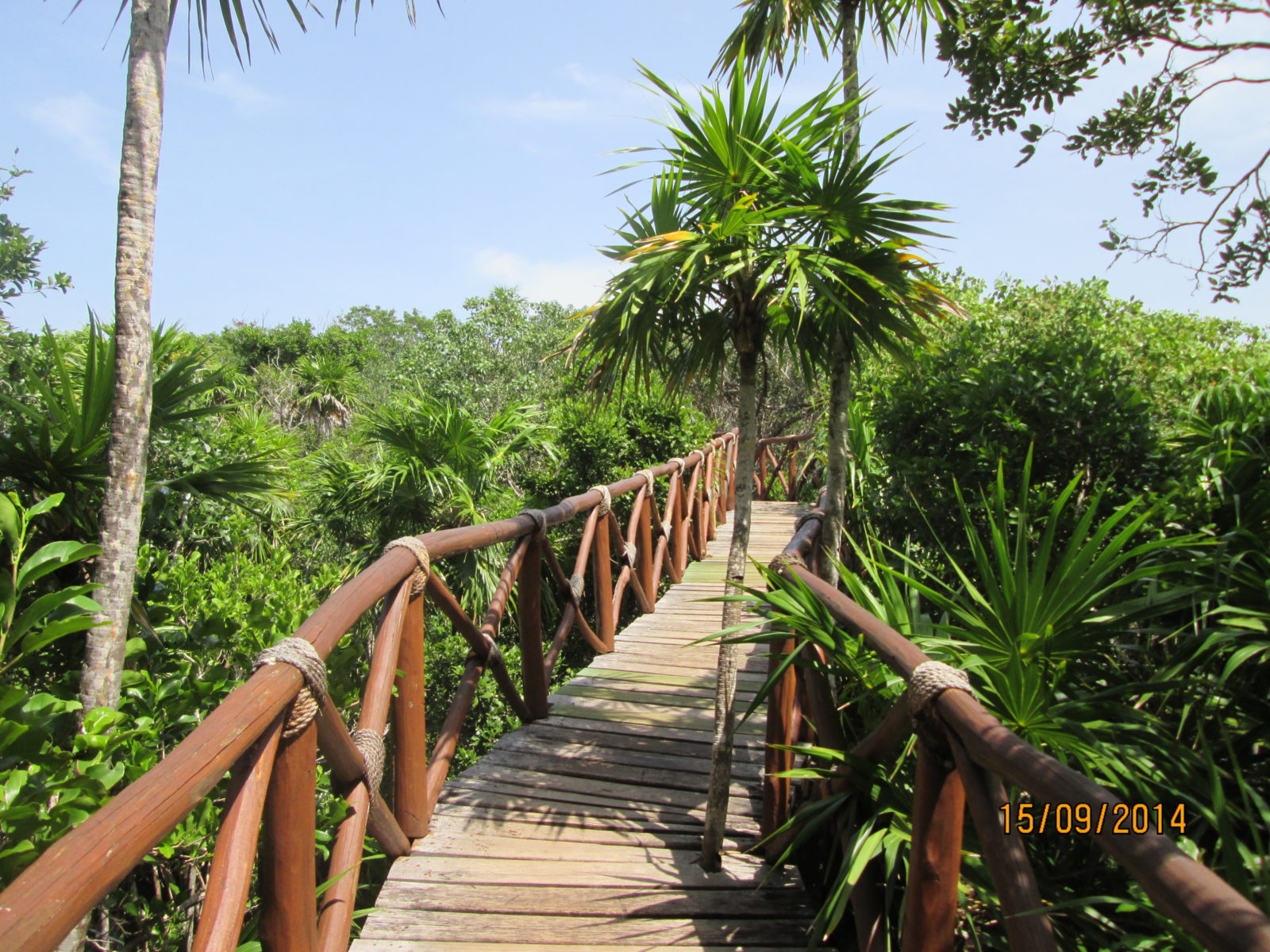 Koniec naszej podróży dookoła zatoki wieńczy przejście przez tzw. Ścieżkę Wiatrów, czyli ruchomy most na wodzie. Przed wejściem na most można zrobić sobie pamiątkowe zdjęcie pod kamiennym napisem Xel-Ha plus aktualny rok.